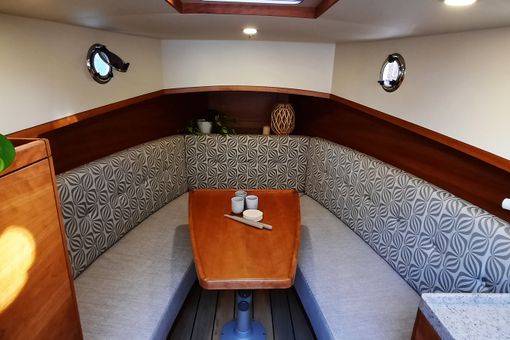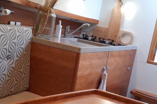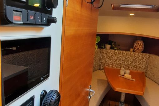 Heeft u de smaak te pakken en wilt u langer op pad? Geen probleem. Het schip is van alle gemakken voorzien. Met een eenvoudig te verlagen tafel verandert u de zithoek in een ruim en comfortabel bed voor twee personen.
